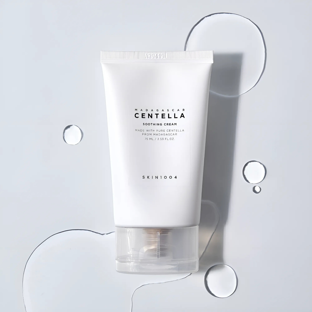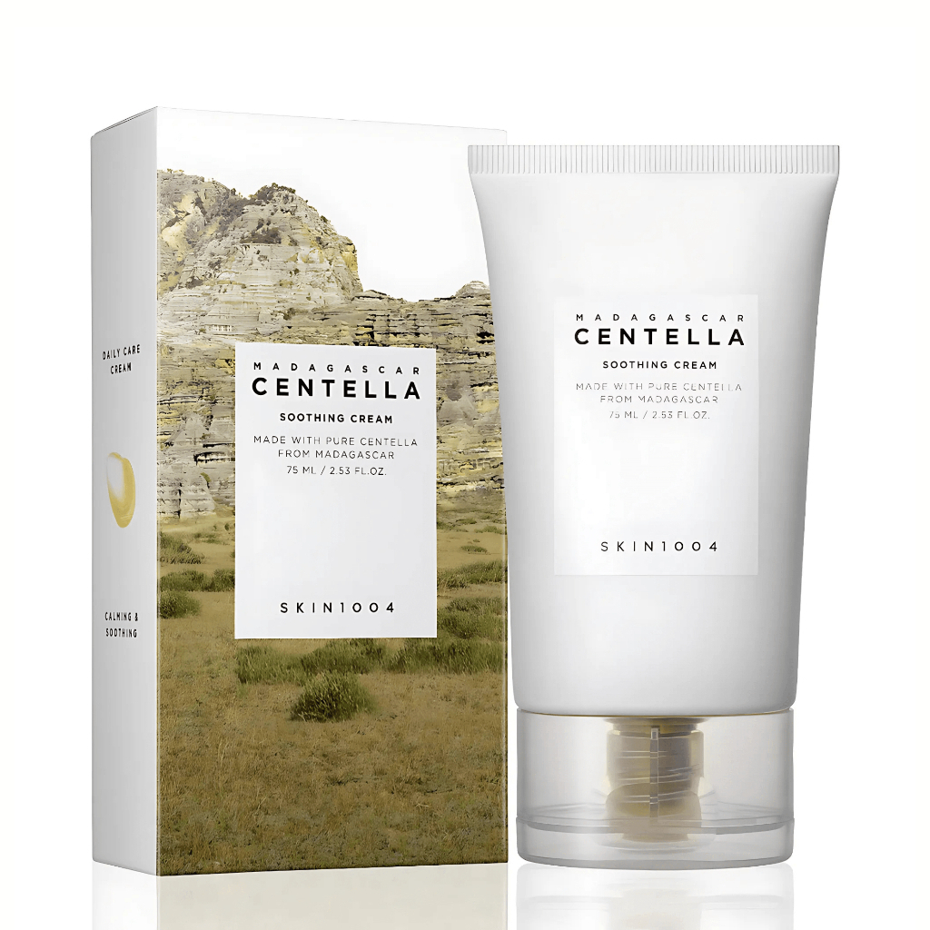 Creme calmante para peles sensíveis. Skin1004 Madagascar Centella hidrata a pele e repara a barreira cutânea, trazendo sensação de conforto e efeito refrescante instantâneo.