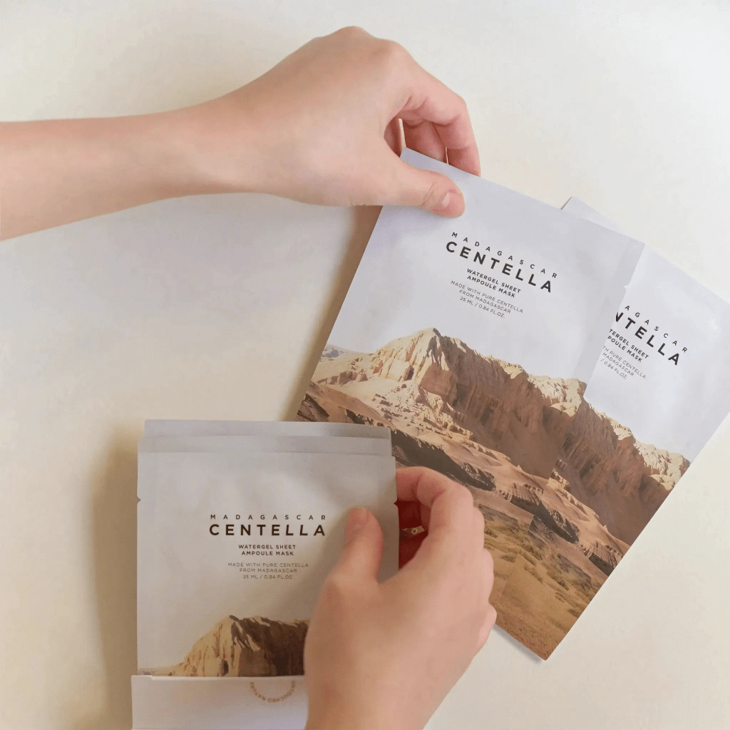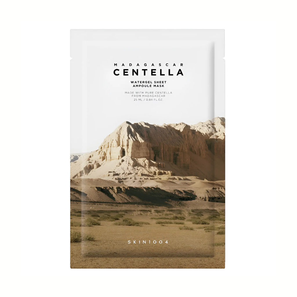 Máscara facial para todos os tipos de pele, especialmente sensíveis. Skin1004 Madagascar Centella acalma e hidrata intensamente a pele.